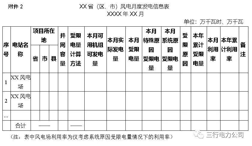 第十一条省级电网企业对其调度机构调度范围内风电场每月报送数据进行汇总、整理、分析和校核,在每月15日前向国家能源局当地派出机构报送各省(区、市)风电场月度发电信息报表(附件2),同时在国家可再生能源信息管理平台和全国新能源电力消纳监测预警平台填报,并向其调度机构调度范围内各风电场披露。