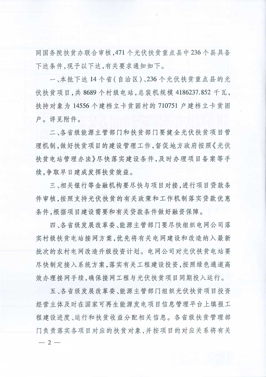 国家能源局 国务院扶贫办关于下达“十三五”第一批光伏扶贫项目计划的通知