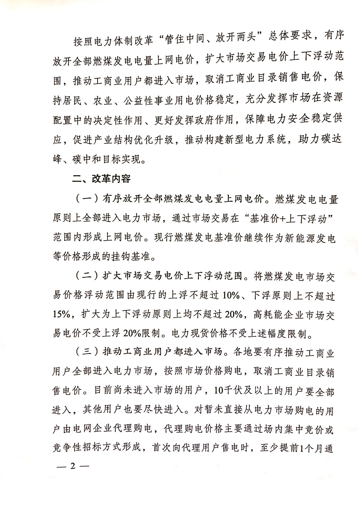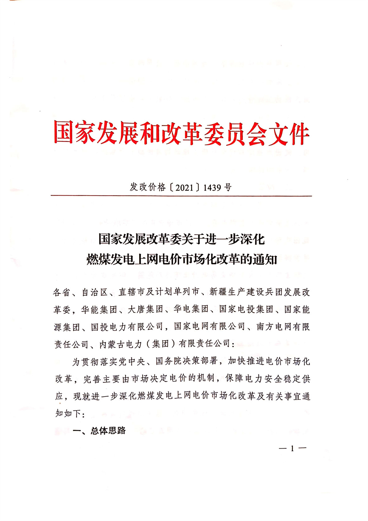 附件:2. 国家发展改革委关于进一步深化燃煤发电上网电价市场化改革的通知