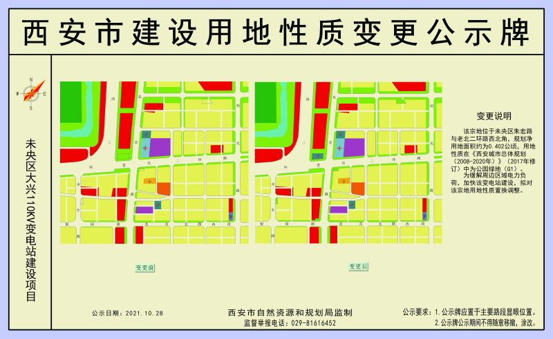 关于西安市未央区大兴110kV变电站建设项目用地性质调整的公示