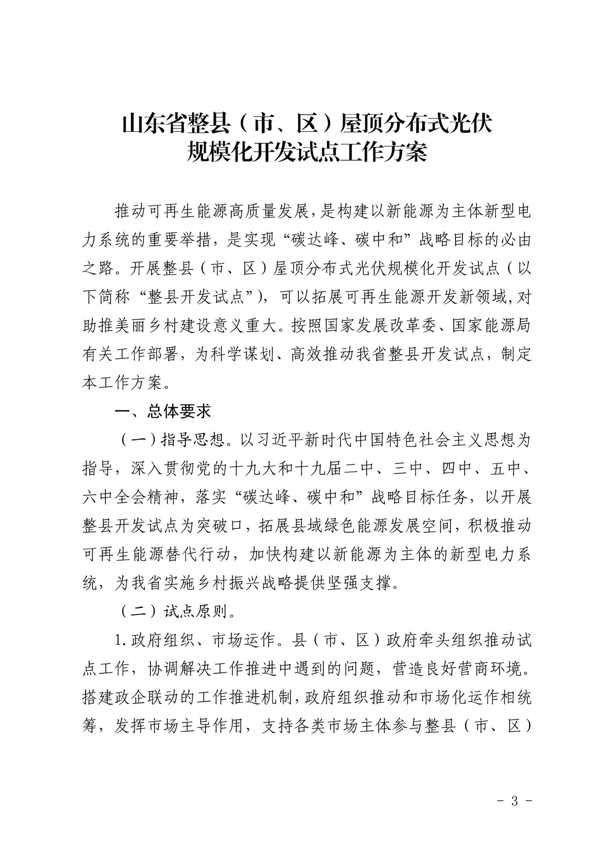 关于印发《山东省整县(市、区)屋顶分布式光伏规模化开发试点工作方案》的通知.pdf