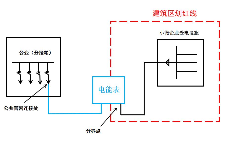 低压小微企业电力接入工程范围为计量箱至公共电网连接处的电力工程。高压类项目电力接入工程范围为建筑区划红线处(用户受电点)至公共电网连接处的电力工程(见附件1)。