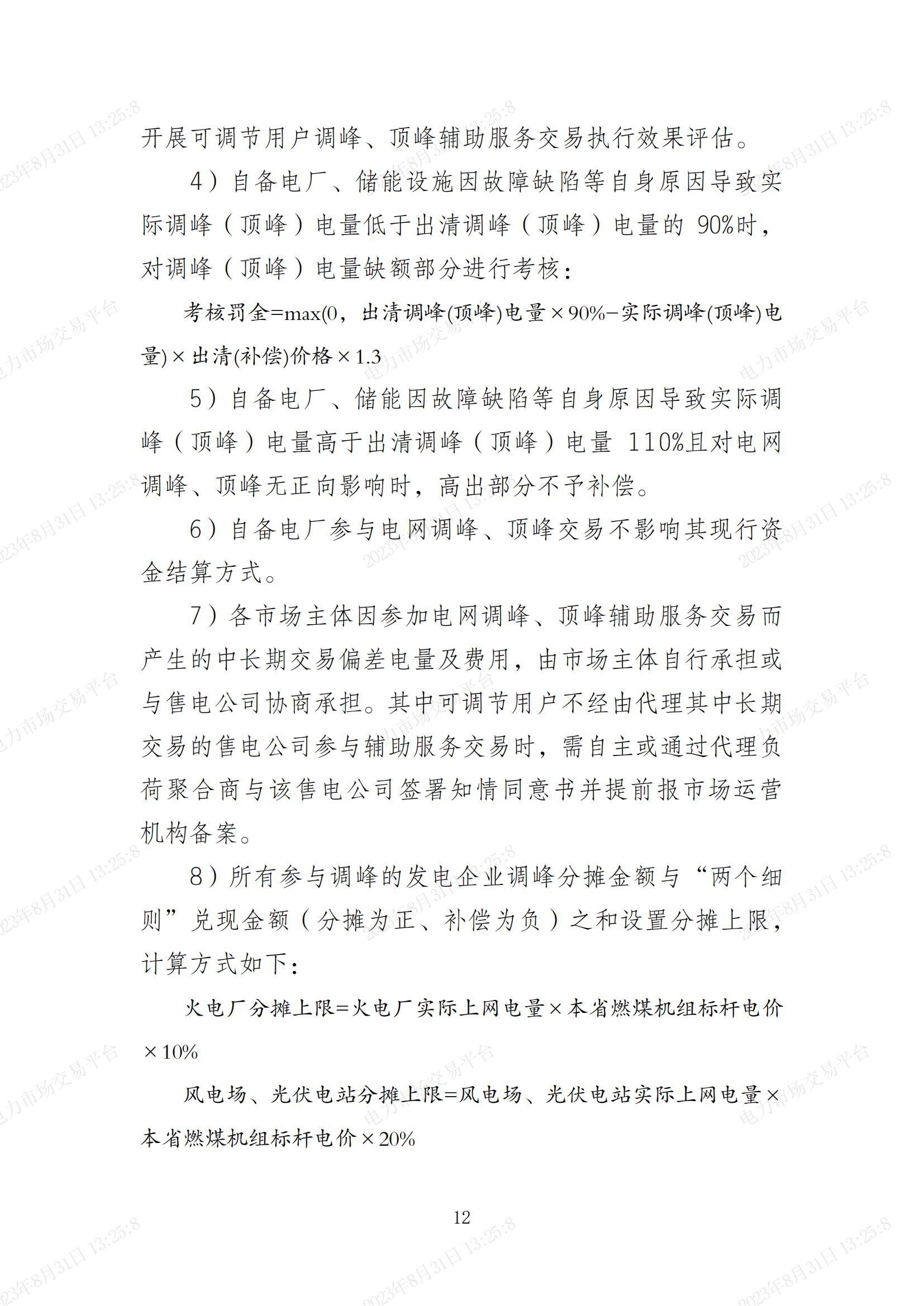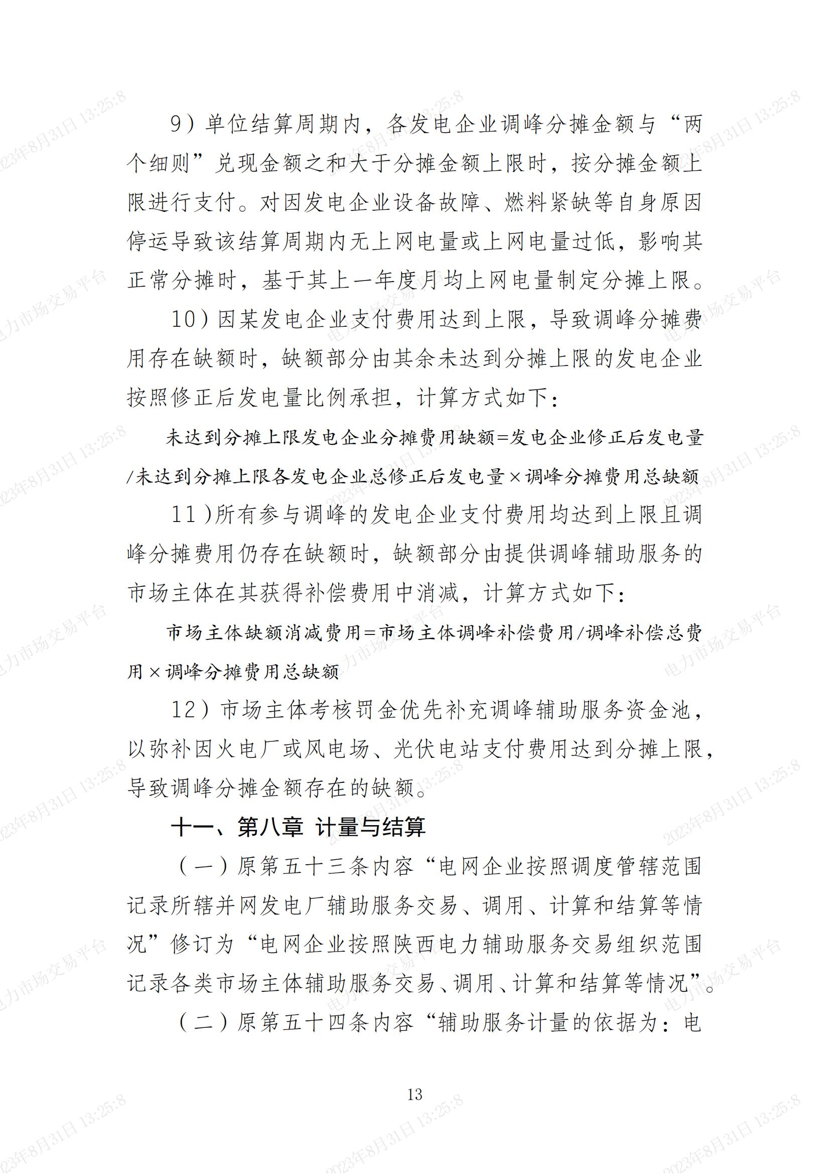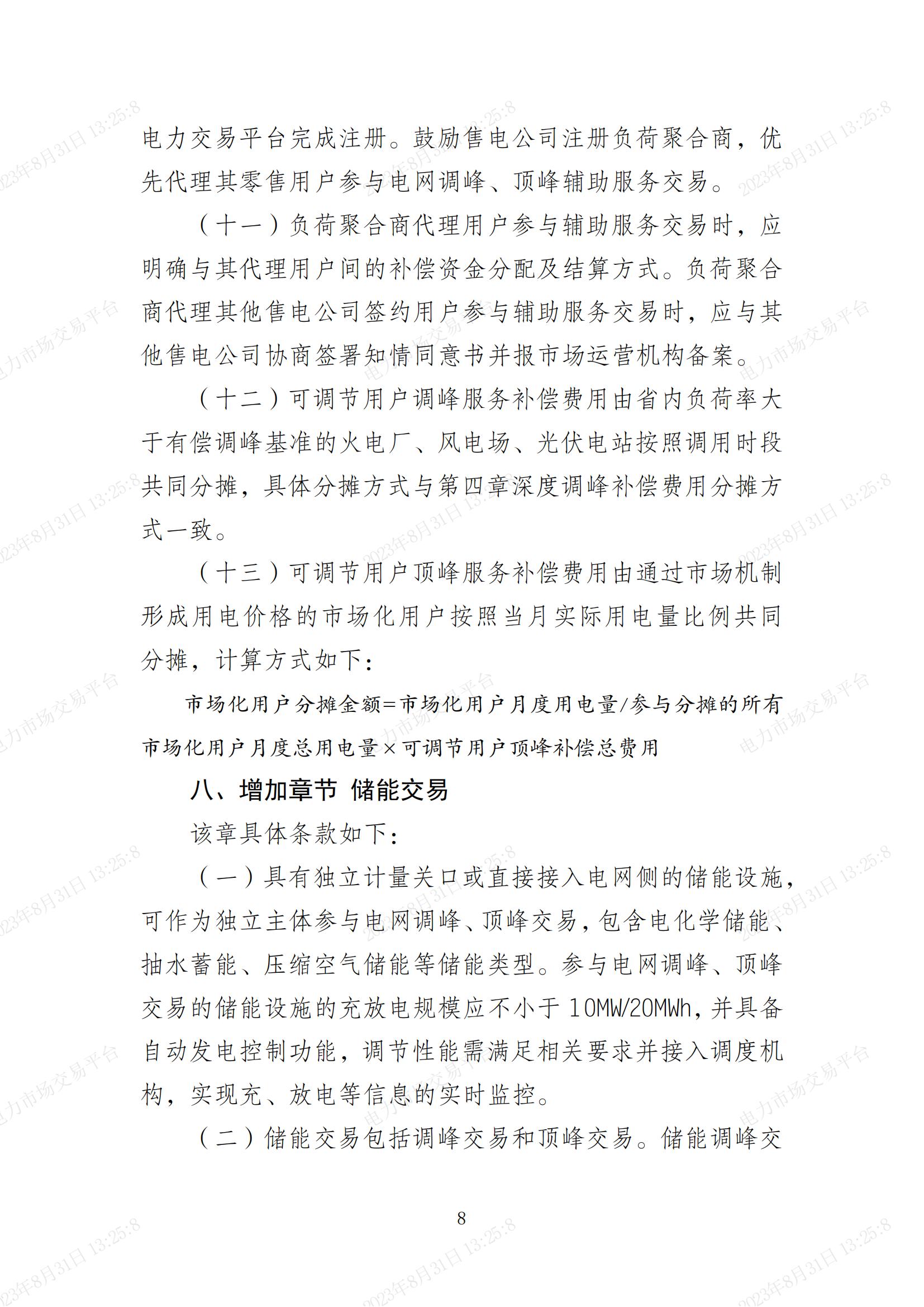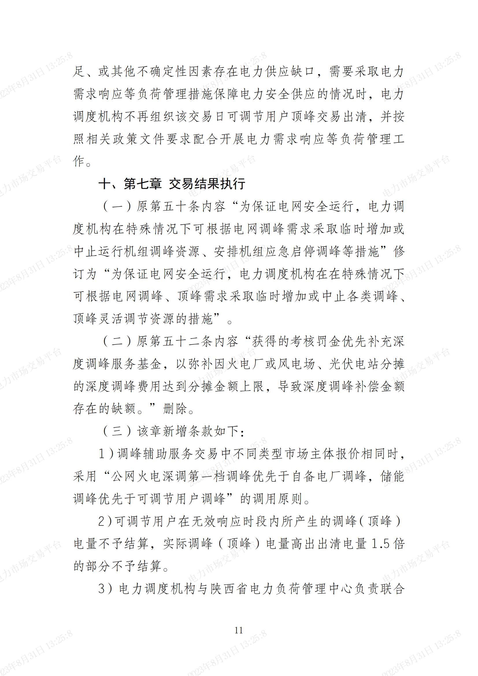电力辅助服务市场的市场主体为陕西省级及以上调度 机构调管的并网发电厂(包括火电、风电、光伏等),以及 经市场准入的储能设施、可调节用户。