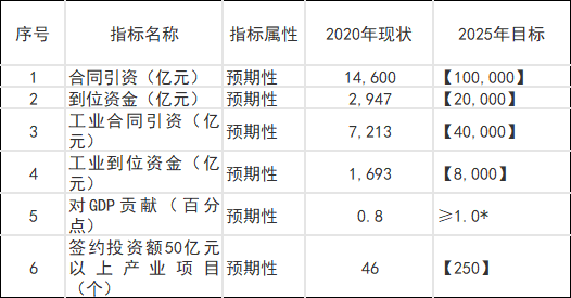 表1 “十四五”招商投资促进主要指标