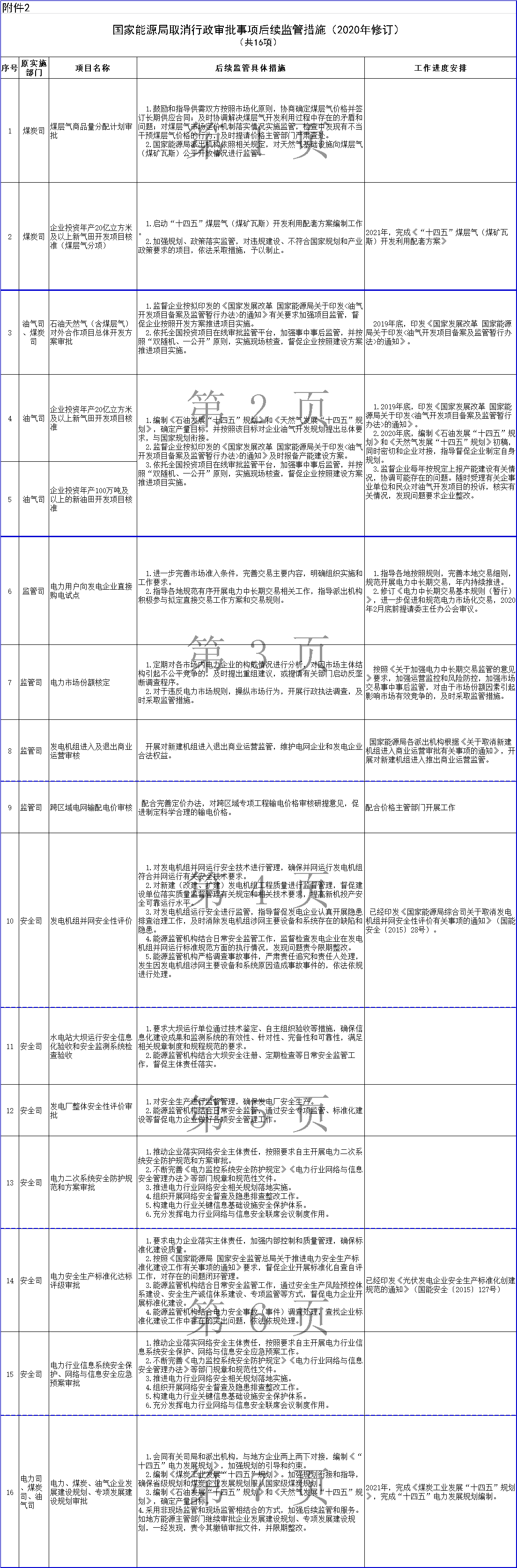 2. 国家能源局取消行政审批事项事中事后监管措施(2020年版)
