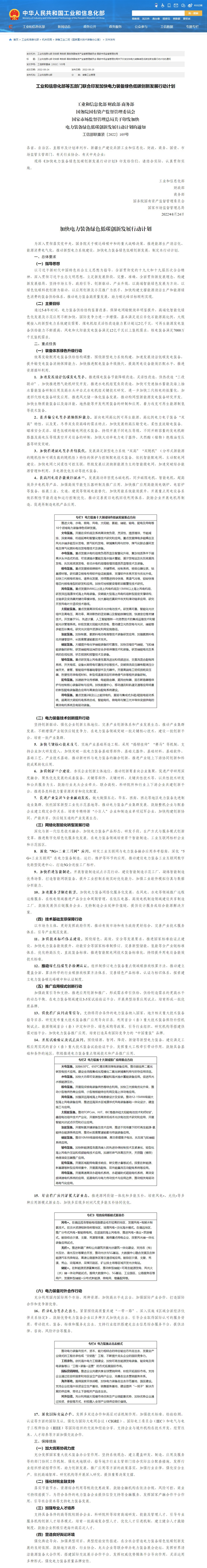 工业和信息化部等五部门联合印发加快电力装备绿色低碳创新发展行动计划。计划提出,通过5-8年时间,电力装备供给结构显著改善,保障电网输配效率明显提升,高端化智能化绿色化发展及示范应用不断加快,国际竞争力进一步增强,基本满足适应非化石能源高比例、大规模接入的新型电力系统建设需要。煤电机组灵活性改造能力累计超过2亿千瓦,可再生能源发电装备供给能力不断提高,风电和太阳能发电装备满足12亿千瓦以上装机需求,核电装备满足7000万千瓦装机需求。