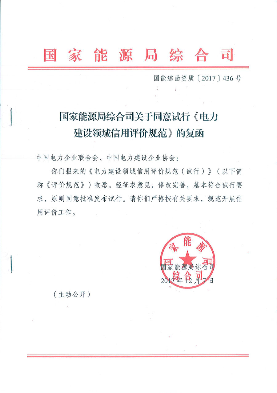 国家能源局关于印发《能源行业市场主体信用评价工作管理办法(试行)》的通知(国能发资质〔2017〕37号);