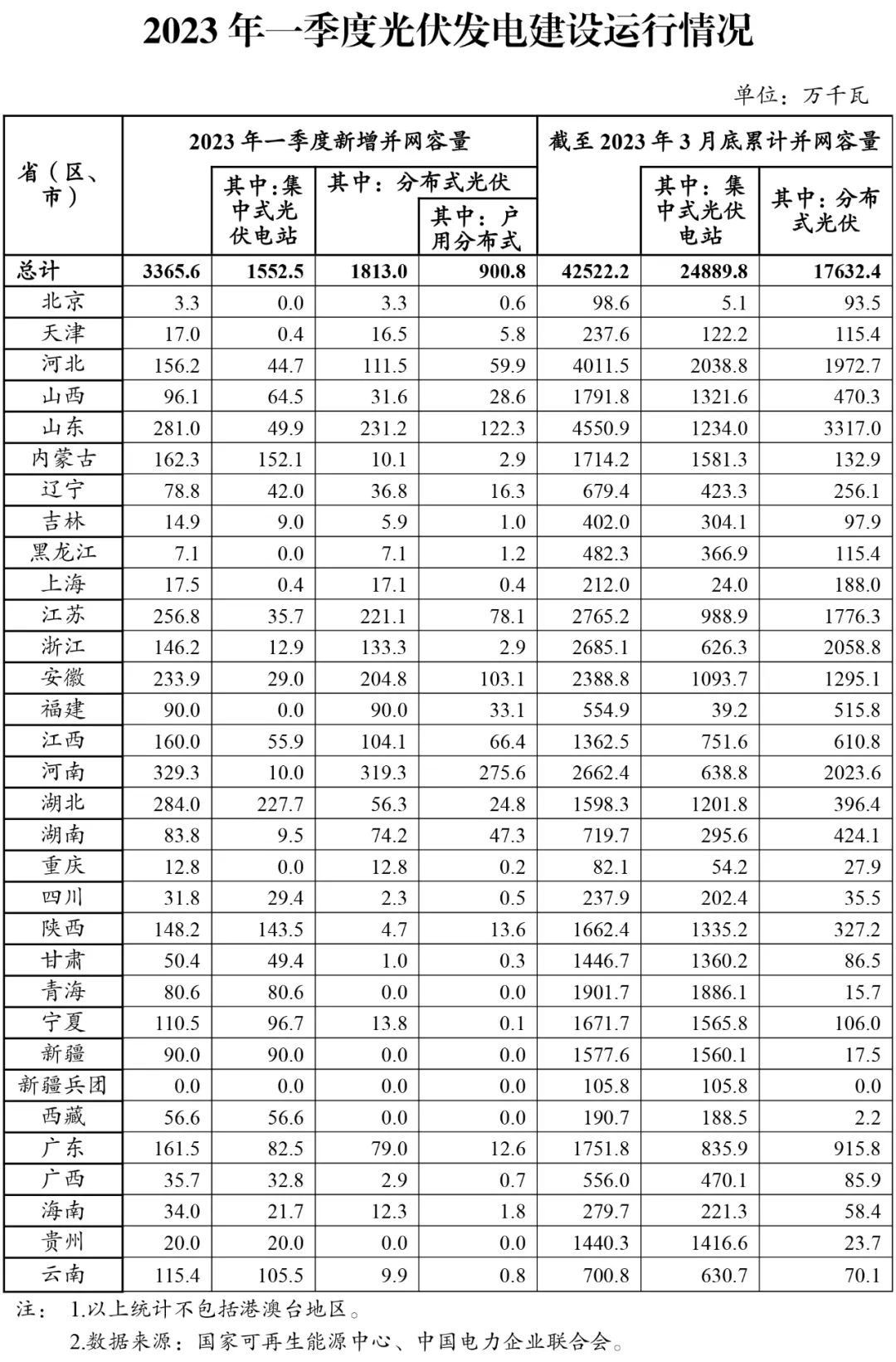 最新消息 | 国家能源局发布 2023年一季度光伏发电建设运行情况