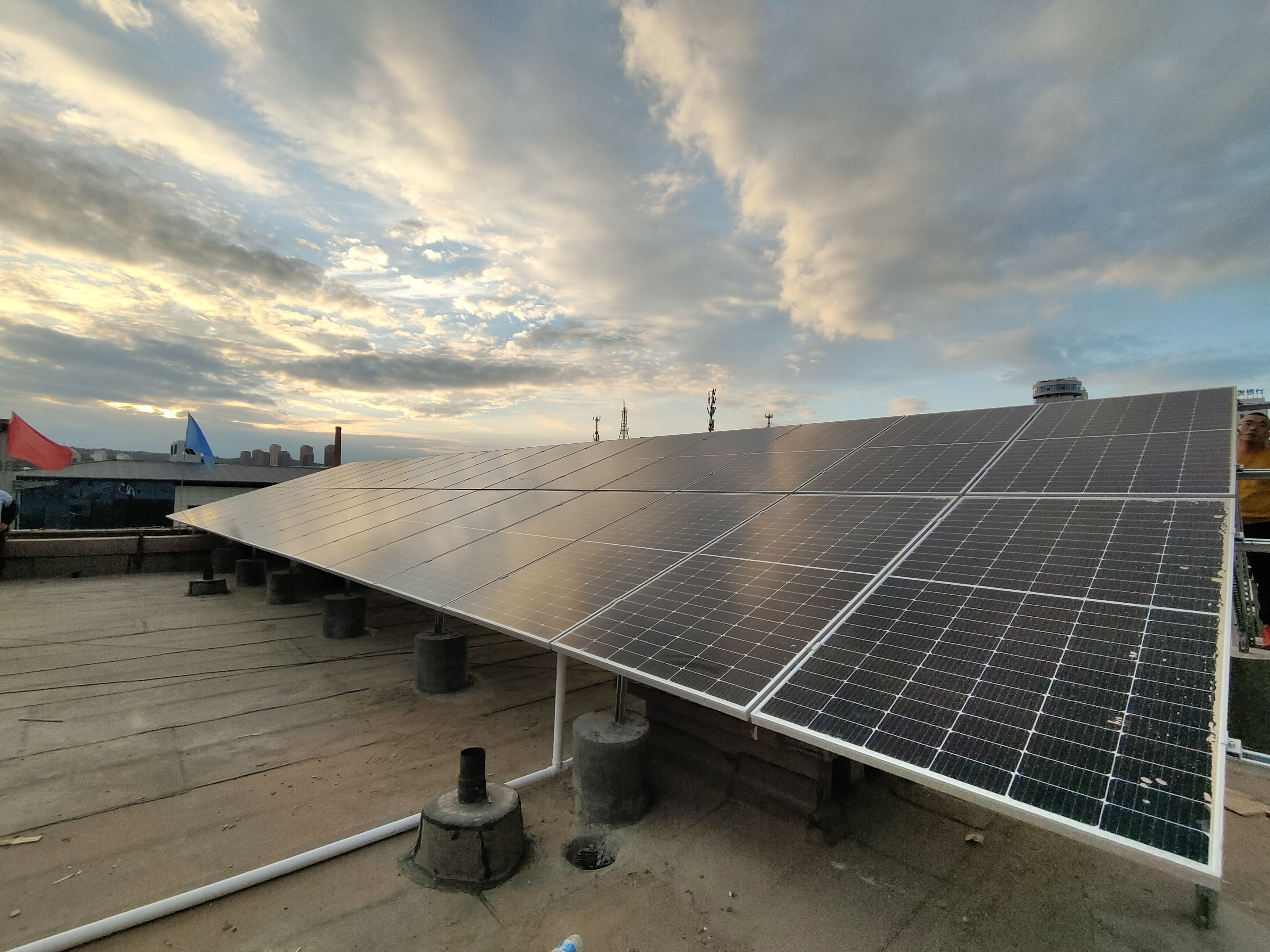 在安装太阳能光伏组件时,考虑到建筑屋面四周设有女儿墙,且光伏组件采取平行屋面平铺安装方式,本工程无需考虑风荷载。在核算屋面承重结构的强度后,可以确认建筑物能够满足光伏电站安装的要求。
